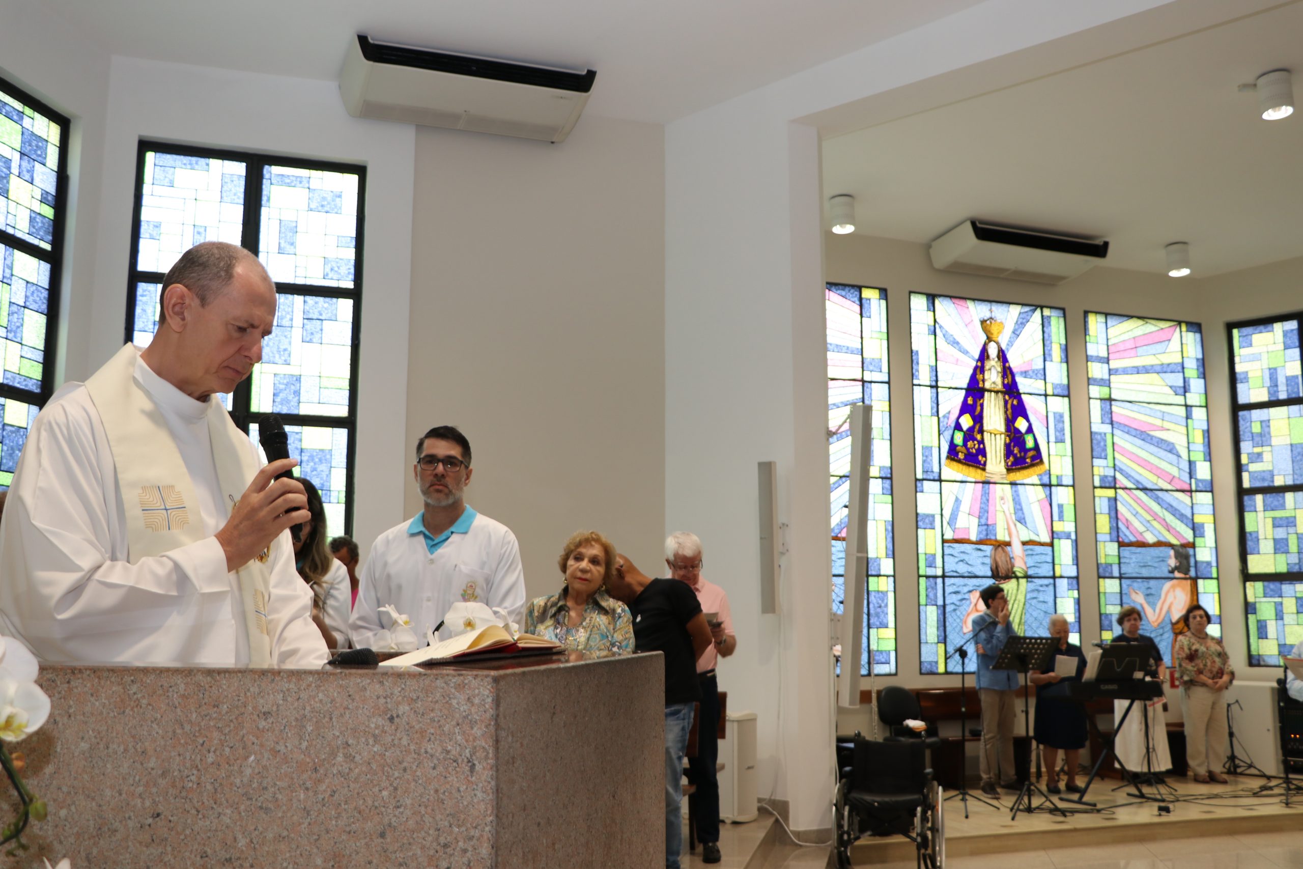 “Hoje, no dia de Nossa Senhora Aparecida, fazemos alegre menção ao centenário da nossa Catedral, cuja programação está inclusa no calendário do Ano Jubilar e a primeira missa foi em maio. Agora, no dia da Padroeira, louvamos a Deus pela nossa história e agradecemos a Deus por todos que construíram essa caminhada pastoral, destacando os 20 anos do padre Guabiraba aqui conosco. Que o exemplo de Maria, a qual nos ensina a fazer o que Jesus disser, nos inspire a continuar servindo com alegria e congregar no amor a esperança”, afirmou.